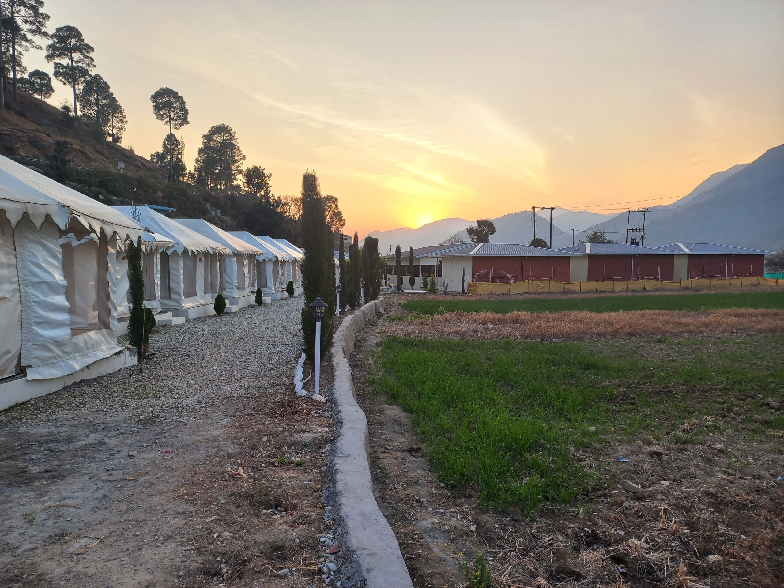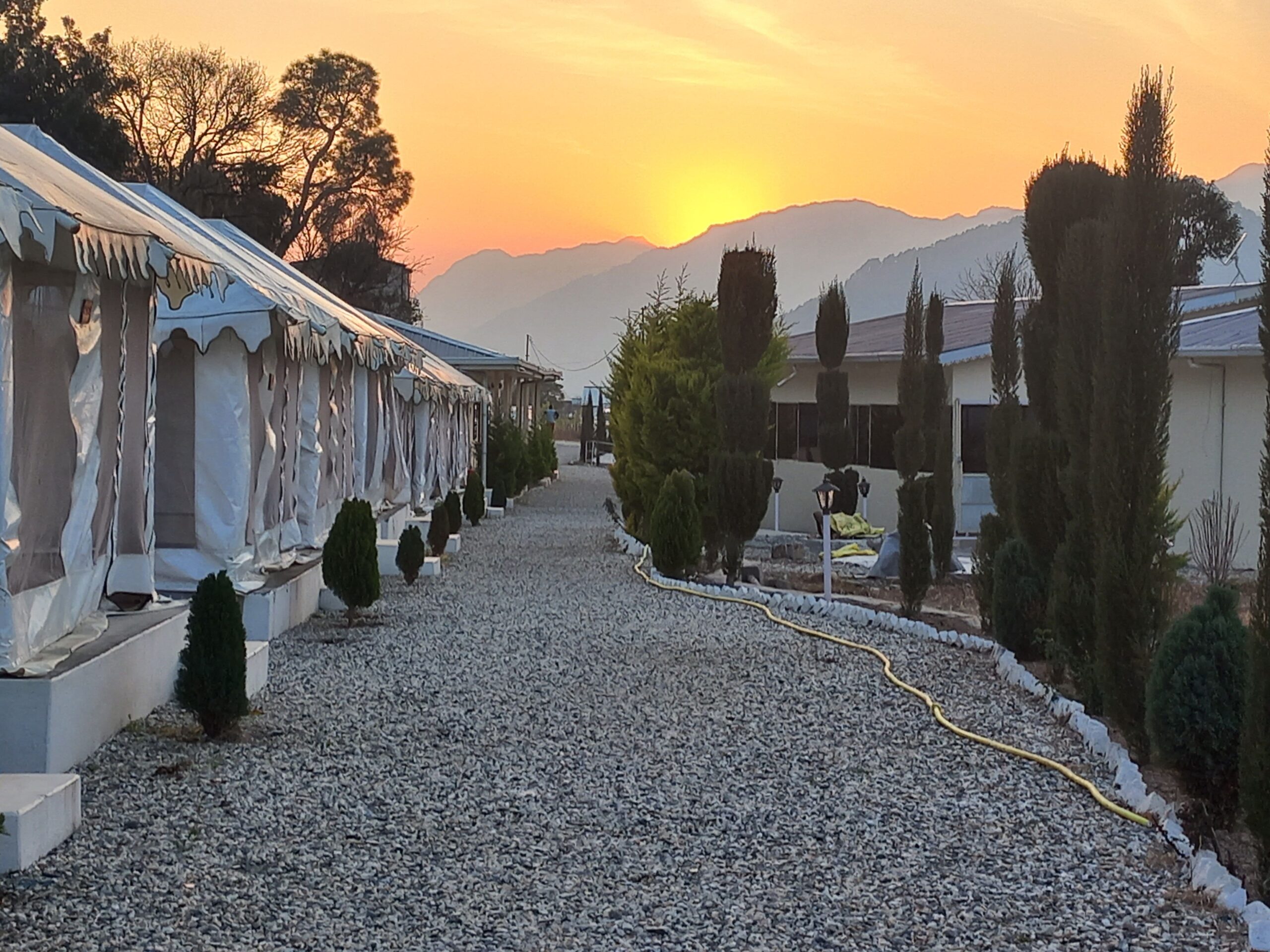 You can reach the resort by road via Dehradun, Mussoorie, or Rishikesh. The nearest airport is Jolly Grant Airport (Dehradun), and taxis/buses are available.